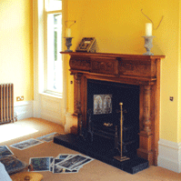 In town houses the walls would be totally panelled from floor to ceiling without any ornate use of plasterwork and painted a single colour. A darker shade may have been used to emphasise details such as skirting boards and doors.